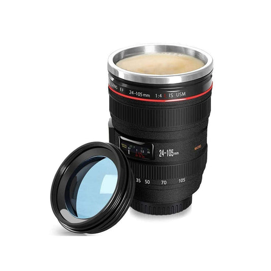 Termo en forma de lente de cámara reflex