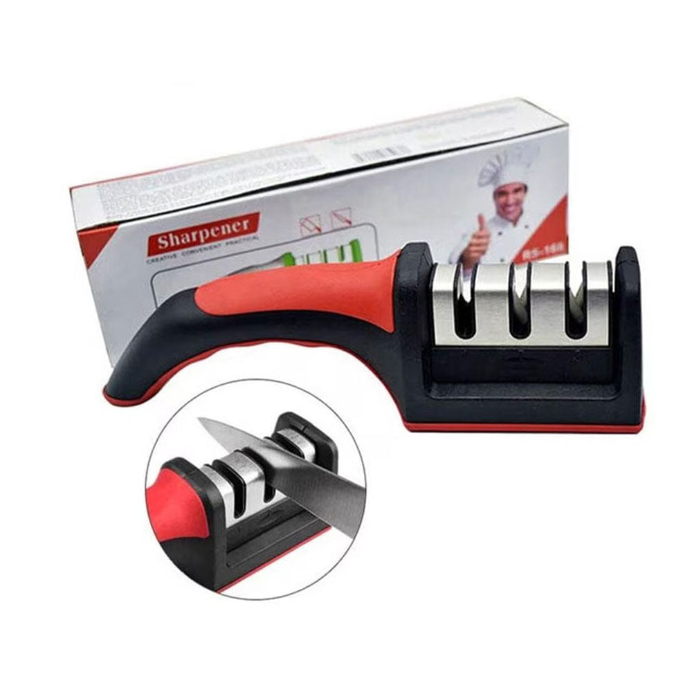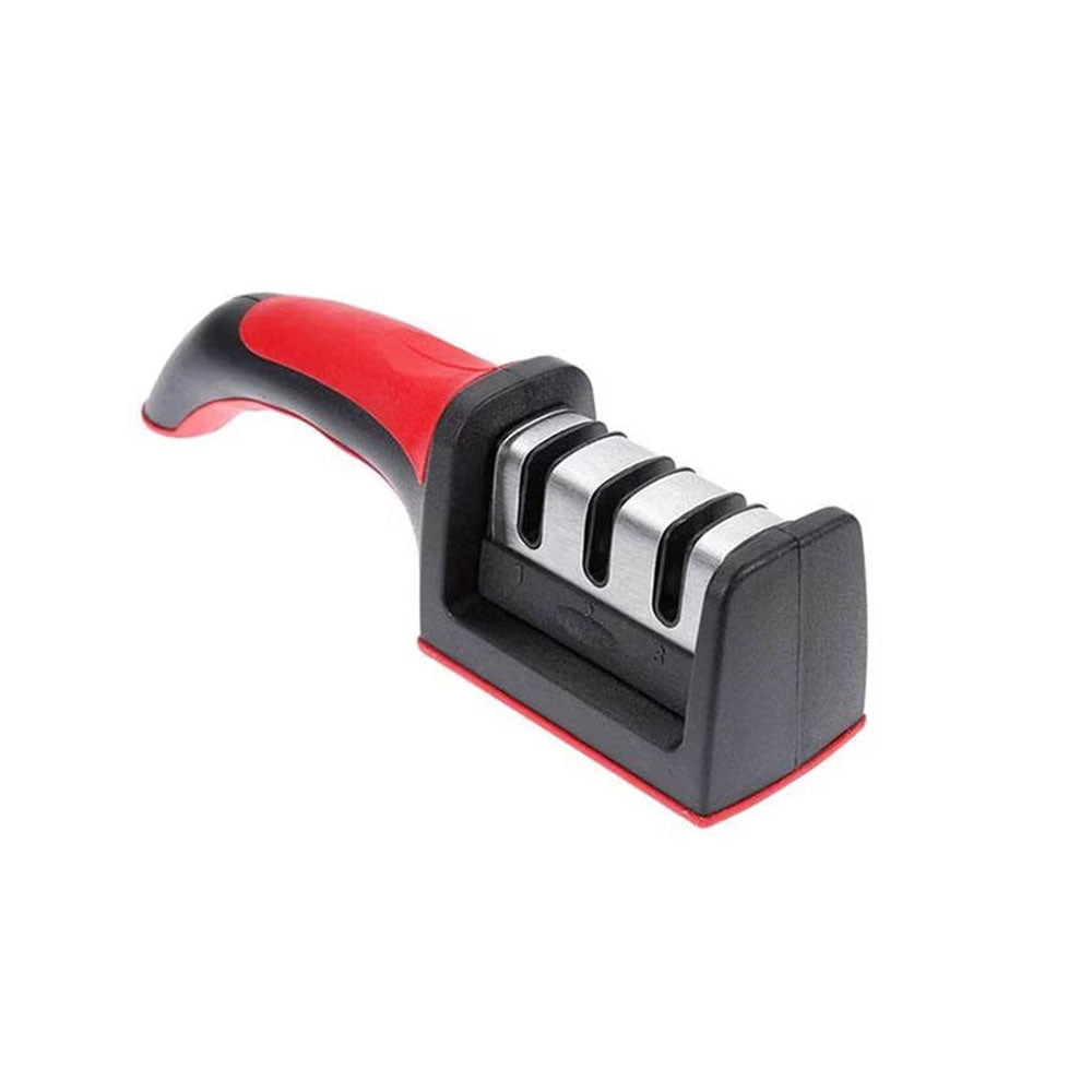 07503033584989 Afilador de cuchillas perfecto para retoques ligeros de cuchillos ya afilados. Mantiene sus cuchillos de cocina de forma rápida y efectiva y los cuchillos rotos recuperan su afilado anterior. El afilador de cuchillos es hermoso y liviano. No solo funciona bien, sino que también se ve genial. El afilador de cuchillos tiene un mango cómodo para un agarre máximo, adecuado tanto para usuarios diestros como zurdos. Base de goma antideslizante resistente para la máxima estabilidad y seguridad: cualquier superficie plana en su cocina servirá para uso: cuchillos de cocina de acero de bordes rectos y cuchillos de sierra anchos (cuchillos de pan), incluidos los cuchillos con hojas de acero endurecido. No lo use en: cuchillos de cerámica, tijeras o cuchillos micro serrados