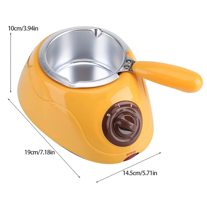 07503037503993 Esta máquina para fundir chocolate es de tamaño pequeño, con un aspecto encantador y una carcasa resistente, duradera para un uso prolongado. El crisol está hecho de material de aluminio, con mango largo para un fácil agarre. Temperatura ajustable de dos niveles Con moldes de chocolate en diferentes formas y tamaños para que puedas hacer dulces de chocolate o galletas. Para derretir chocolate sin agua, fácil de operar.